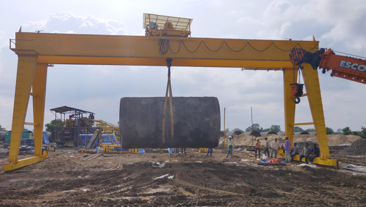 D.R. Gantry Cranes Offer a Very economical solution for lifting materials compared to Overhead cranes.They are both Durable and Portable and Wide ranging capacities, spans and lifting speeds are offered as per client’s requirements. ideal for warehouses, construction sites, garages, loading docks, etc. Where part utilization of workshop is required Semi-Gantry cranes are provided. D.R. also offers cranes with overhangs on one or both sides. An auxiliary hoisting mechanism can also be fitted on the crab. They travel on rails installed on ground level. Wheels may be of SG iron or Solid rubber type. They are available as Single / Double Girder and for indoor and outdoor duty